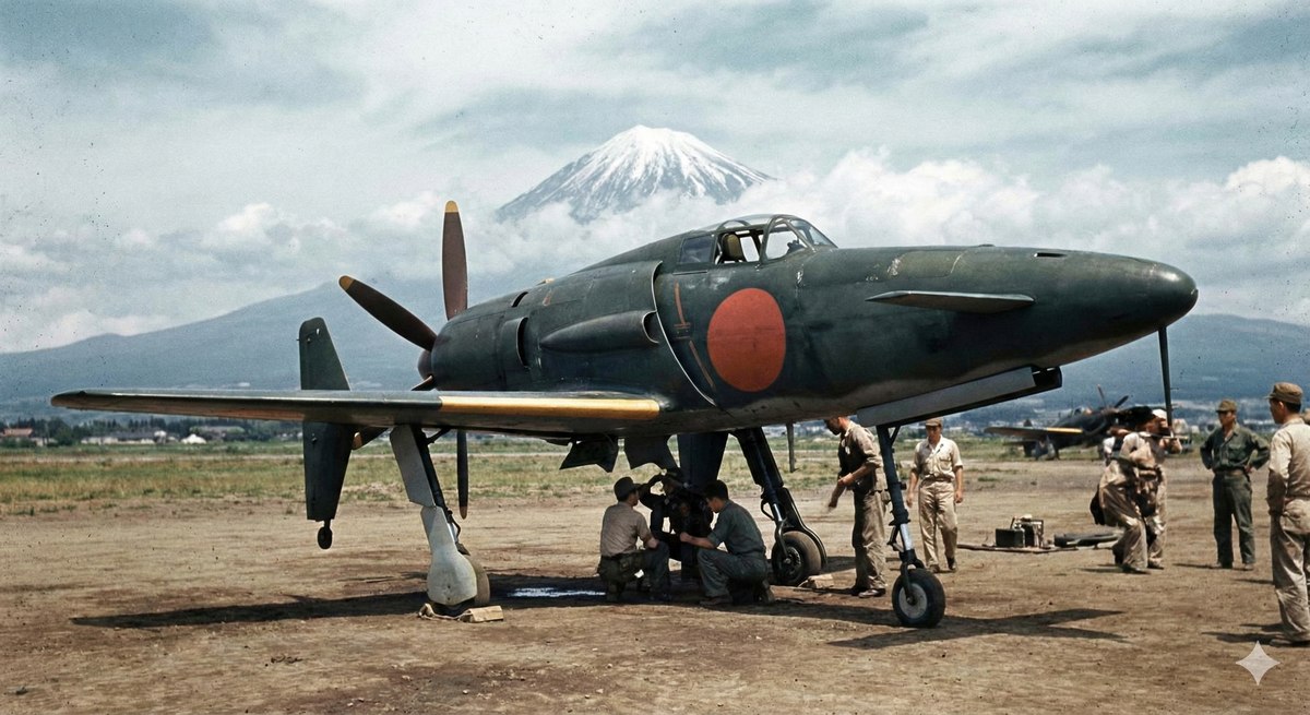最初はもう一つのブログ様に、背景がを描いてもらおうと思っていたのだが、途中から脱線して、なんとなく、女性と震電と言う、終戦時までに実践化出来なかった戦闘機を描いて貰った。